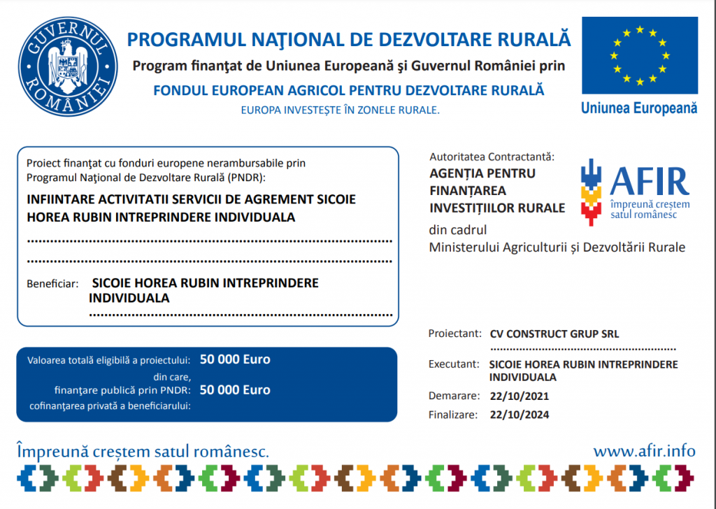 INFIINTARE ACTIVITATII SERVICII DE AGREMENT SICOIE HOREA RUBIN INTREPRINDERE INDIVIDUALA